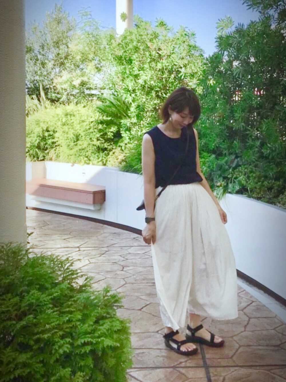 ☺︎由佳☺︎のトップス「(GU)バックジッププルオーバー(ノースリーブ)」を使ったコーディネート