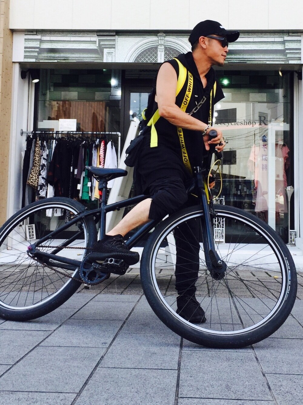 愛車29インチMTBシングルスピード復活! ☆チャリStyle☆ 本日も伊勢のrecycle shop ®️さんへお邪魔してきました。 オールブラックにoff-white&rafの黄色が差し色。