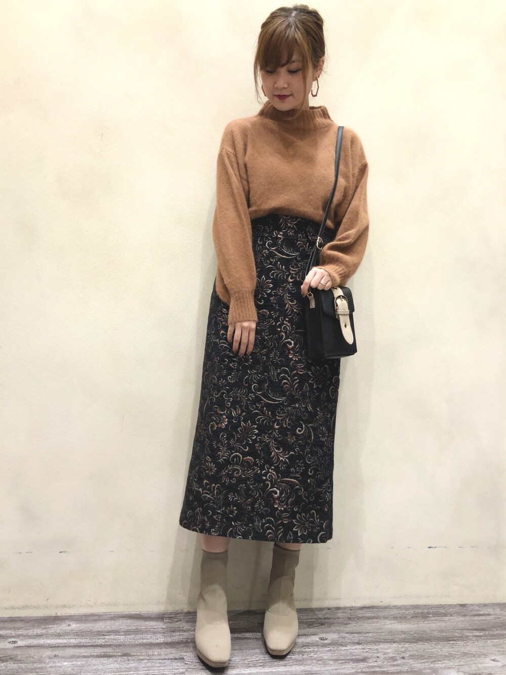. 大人気のフォックス混ニットを 使ったコーデ💓 ブラウン✖️ブラックの 大人カラー 濃い組み合わせのコーデには バックと靴のベージュで 柔らかい雰囲気に✨ .