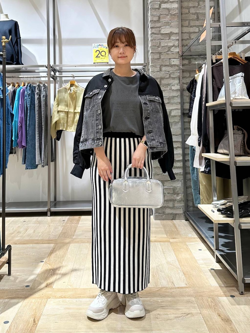 モノトーンカジュアルコーデ 切り替えデザインのデニムジャケットが おしゃれ見えします 165cm骨格ウェーブ