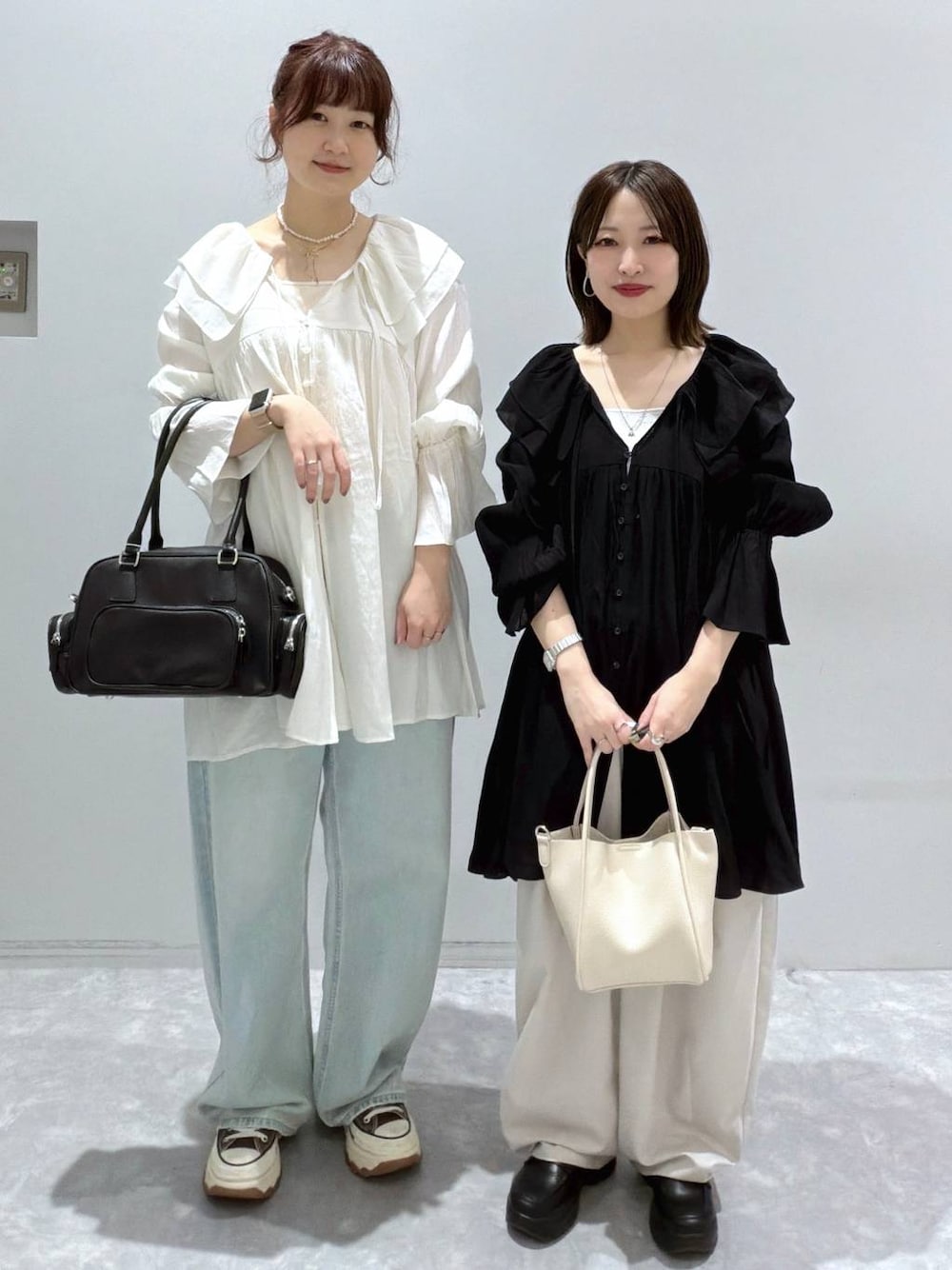 身長差19cmの身長比較コーデ 左)しおりん 165cm 右)ヒトミさん 146cm