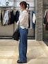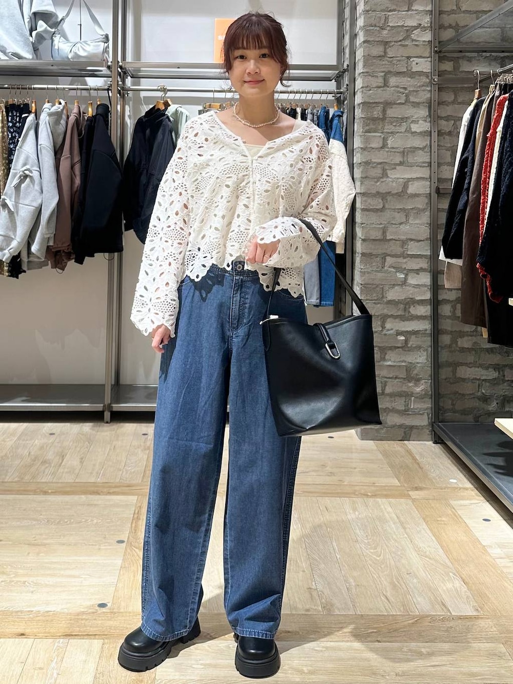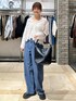 レーストップスが可愛い デニムパンツコーデ デニムは夏向けの涼しい素材