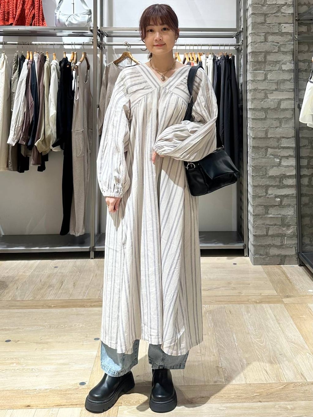 カジュアルワンピースコーデ 初夏までサラッと着られそうな 素材のワンピ ゆったりしてるから体型カバー⭕️