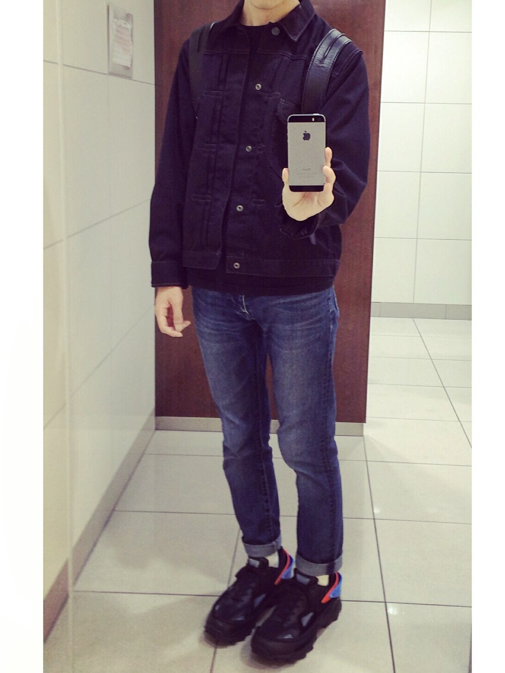 アウター: N.HOOLYWOOD デニム: UNIQLO スニーカー: RAF SIMONS バッグ: Alexander Wang