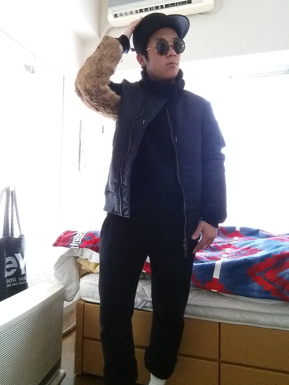 アウターのMA-1がとても気に入ってます。 ハット:ガンリュウ サングラス:ADSR アウター:バラブシュカレムナンツ スウェット上:H&M スウェット下:もらいもの(無印) ソックス:ネイビールーツ 最近、LHPが気に入ってます。行くと必ず欲しい物が見つかります。 特に新宿店によく行きます。 日本デザイナーの物が沢山あって、とっても勉強になります! 今回も自分なりのストリート感を出してみました。