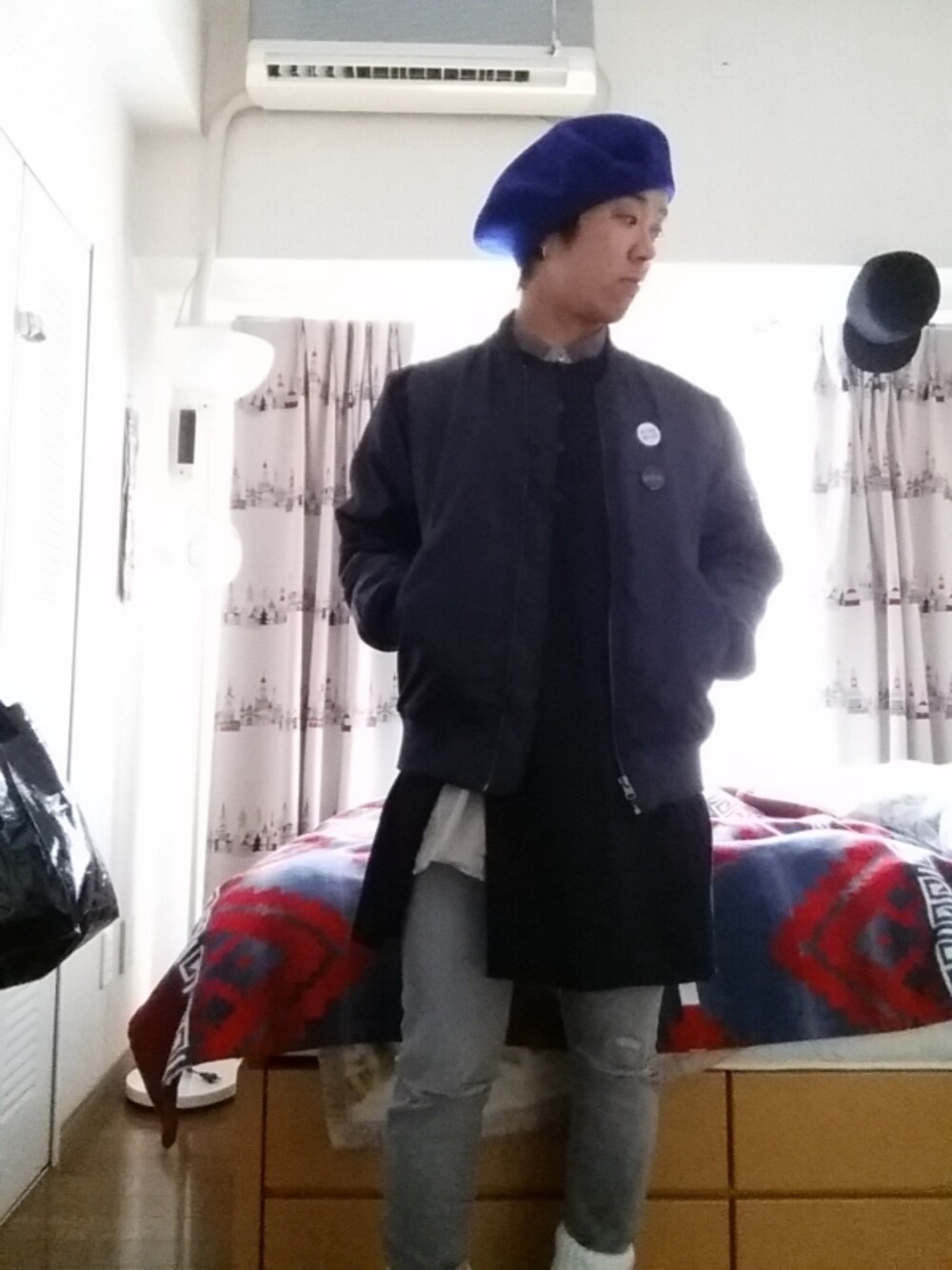 このMA-1は久々着ました。アウターを缶バッジ ジャラ付けにするか迷ってます。