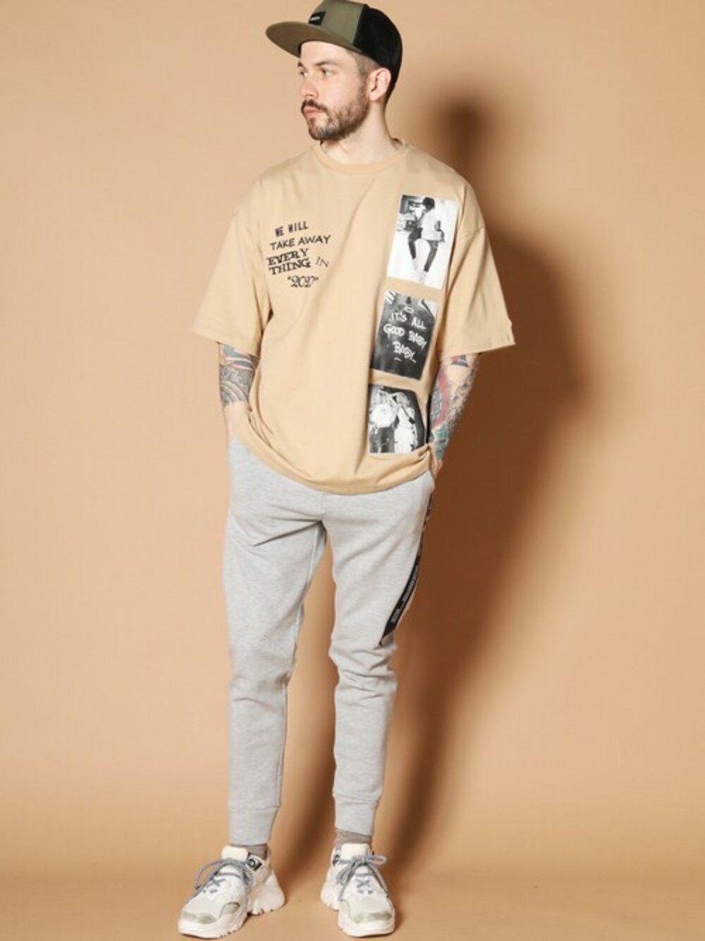 GALLIS ADDICTIONからモノクロフォトがプリントされたオーバーサイズ半袖Tシャツ登場。 長袖で売れたTシャツの半袖バージョン。今や定番となったビッグシルエットのカットソーとのレイヤードも着膨れすることなく着れる1枚。 また、トレンドカラーのベージュ(くすみカラー)も揃えており、スキニーパンツやワイドパンツなど、合わせるボトムス次第でガラッと表情を変えるのでスタイリングが楽しくなること間違いなし。 ユニセックスでも着用可能。