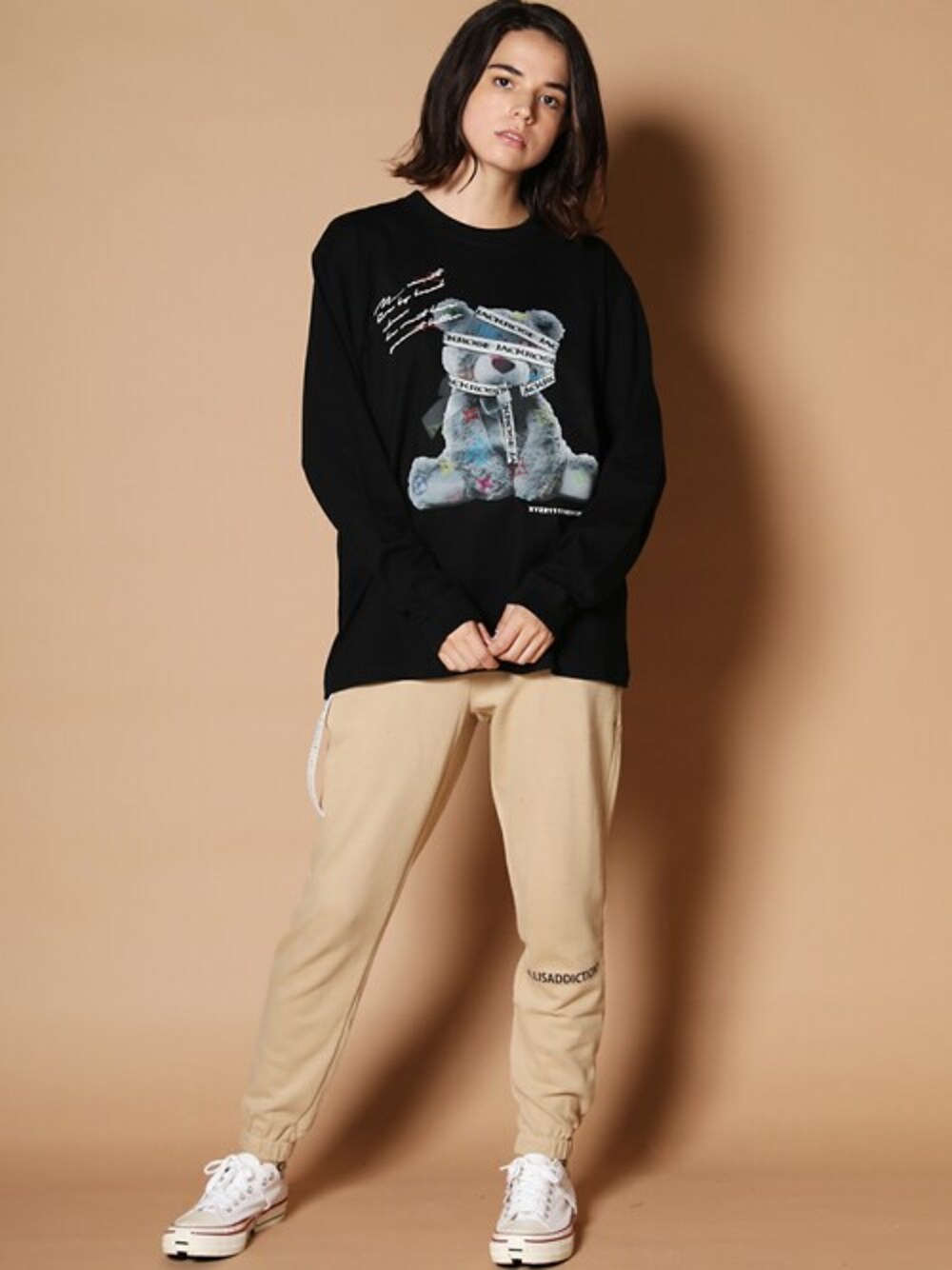 JACKROSEから独特な雰囲気のベアーがデザインされたロンT登場。 前面にはブランドロゴのリボンでラッピングされたどことなくホラーチックな1枚。 JACKROSEならではの原宿系らしいデザインのロンTになります。ユニセックスで着用可能。