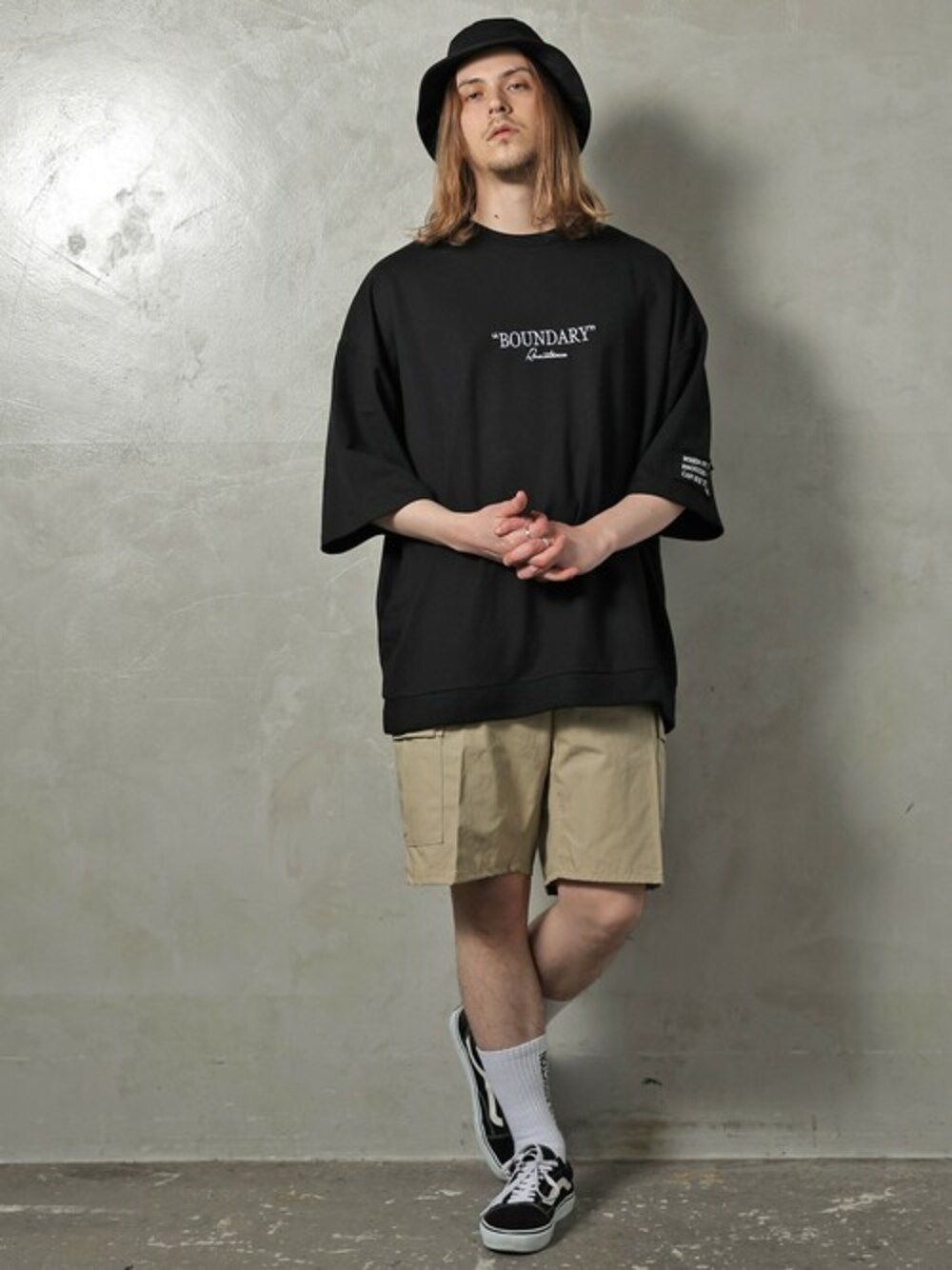 ACKROSEからロゴリメイクビックシルエットTシャツ登場。 全体的にダボっとしたラフなシルエットになります。シンプルでどんなコーデにも合わせやすい1枚。 半袖になった事で袖のワッペンもよりリメイクらしい雰囲気になっております。
