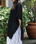 ゆったりとしたポンチョシルエットは前後2wayでボートネック、ヘンリーネックどちらでも着用出来る万能アイテム。 バックと入ったスリットはボリュームを軽く見せてくれます。 一枚でも、レイヤードとして、羽織のインに様々な着こなしが楽しめるポンチョトップス