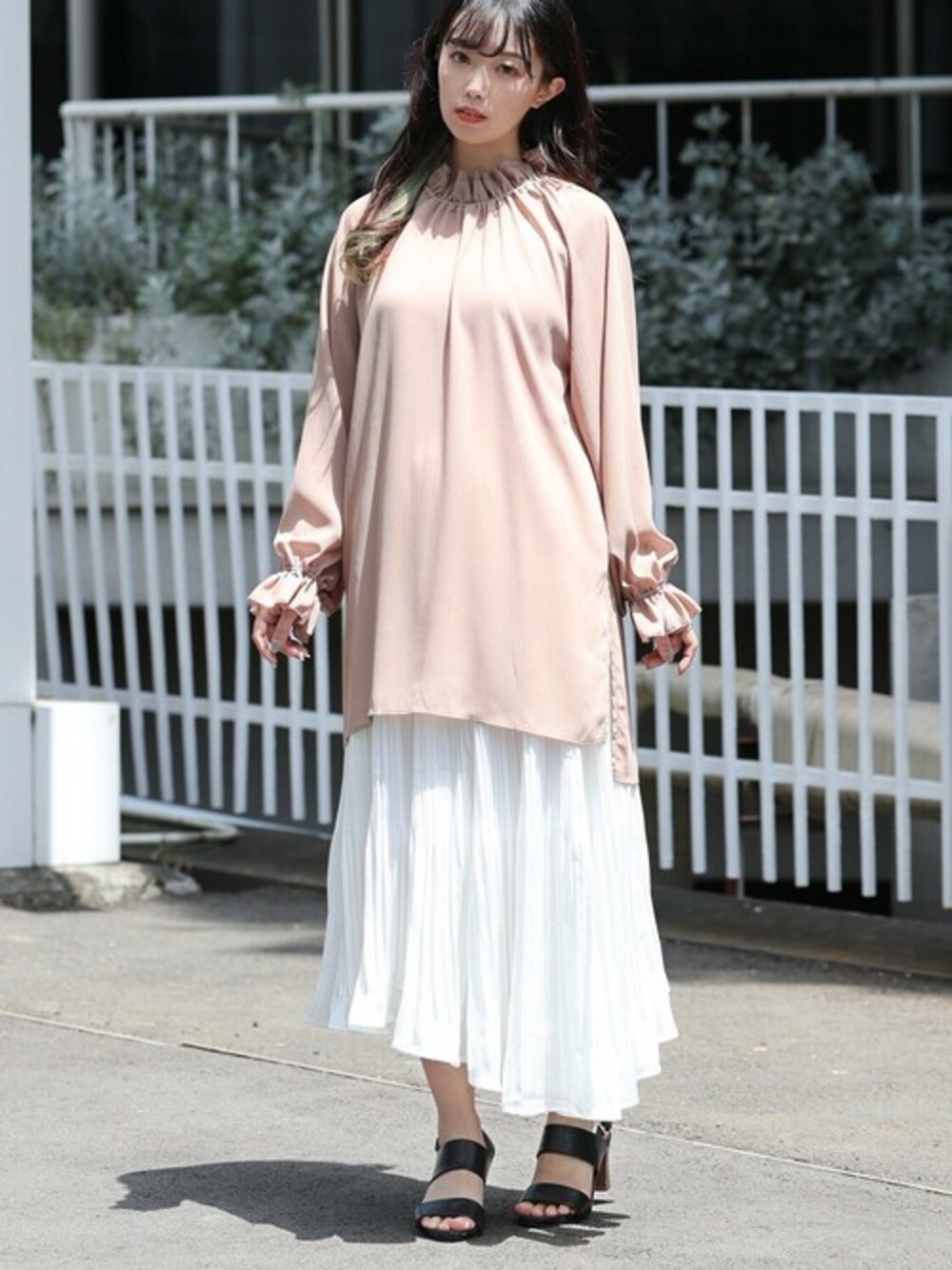 透け感のあるフリルブラウスが登場。襟と袖口をフリル仕様にしたベーシックなボリュームスリーブシャツ。 用途は様々で1枚でも、サロペットのインナーにも、ニットベストのインナーにもレイヤードコーデの アクセントとなるアイテム。 レイヤードではアクセントに使う事でワンランク上のコーデが楽しめる。 1枚でもインナーにキャミソールを着て、透け感のある大人らしいコーデをつくる事ができる。 1枚持っていると活用の幅が広がる嬉しいアイテム♪ビスチェなどを合わせても◎。