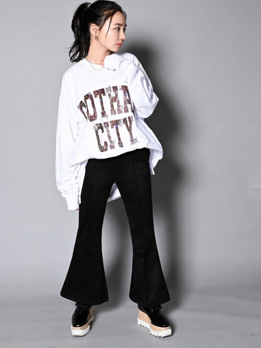 GALLIS ADDICTION(ガリスアディクション)からビッグシルエットロンTが登場。 スリット入りのロング丈ビッグシルエットボディーにグリッタープリントでデザインされたカレッジロゴが映える、GALLIS ADDICTIONの新作1枚。 フロントの左裾にはネームが付けられ、背中の裾にはブランドロゴがプリントされています。アメカジのデザイン要素を流行りののストリートに昇華させた存在感十分のロンT。