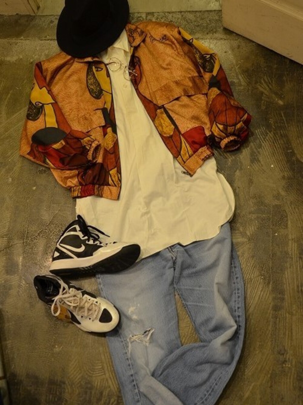 USEDアイテムから、存在感抜群の【ピカソジャケット】を使ったコーディネイトです♪ 上半身は小物も含め、大人カッコよく…… 下は人気のクラッシュデニムにスニーカーでストリートMIX!! 90’sアイテムで、90’sらしいスタイリングに♪ 【詳細は⇒http://urx2.nu/hfHN 】 着用アイテムは全て通販可能です。 お問い合わせは、054-221-0421。またはSNSにて。