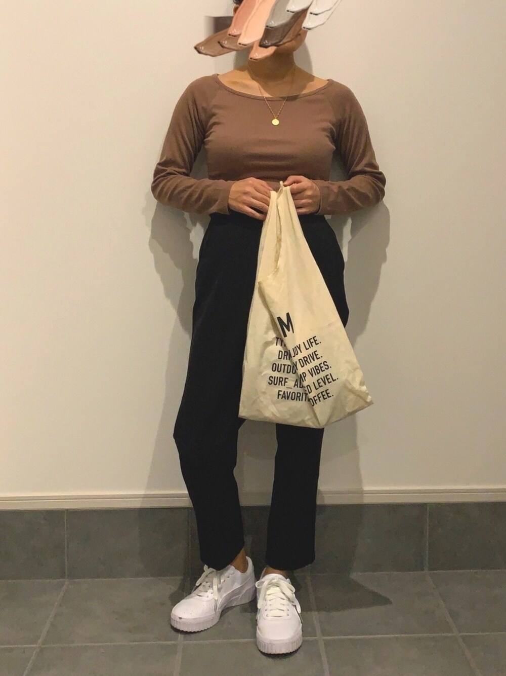 GUPUMA¥10,780JKMAuntie Rosa Holiday¥1,320Honeysこの画像から似たアイテムを検索できます49047お気に入り (2)470yuuukiiiさんへのコメントNO COMMENTコメントはスマートフォン用アプリからご利用できます着用アイテムGUGUスラックス (ブラック系)スラックス探すZOZOTOWNで探す¥10,780PUMAPUMAスニーカー (ホワイト系)スニーカーサイズ:23.0cm着用コーデ:10件探すZOZOTOWNで探すJKMJKMトートバッグ (ベージュ系)トートバッグ探すZOZOTOWNで探す¥1,320Auntie Rosa HolidayAuntie Rosa Holidayネックレス (ゴールド系)ネックレスサイズ:FREE着用コーデ:283件商品を見るZOZOTOWNで購入するHoneysHoneysTシャツ/カットソー (ブラウン系)Tシャツ/カットソー探すZOZOTOWNで探すyuuukiiiのスラックスを使ったコーディネート2020.9.16着用ブランドGUPUMAJKMAuntie Rosa HolidayHoneysタグ#シンプルコーデ#秋#プチプラ#低身長コーデ#ママファッション#ブラウンコーデ#大人カジュアル#着回しコーデ#楽チンコーデ#白スニーカーモデル情報女性・153cm似ているアイテムGU × スラックスPUMA × スニーカーJKM × トートバッグAuntie Rosa Holiday × ネックレスHoneys × Tシャツ/カットソーyuuukiii@jadbcq / 153cm / WOMEN0コーディネート0フォロワー注目のコーディネートアプリでもっと見るもっと見る