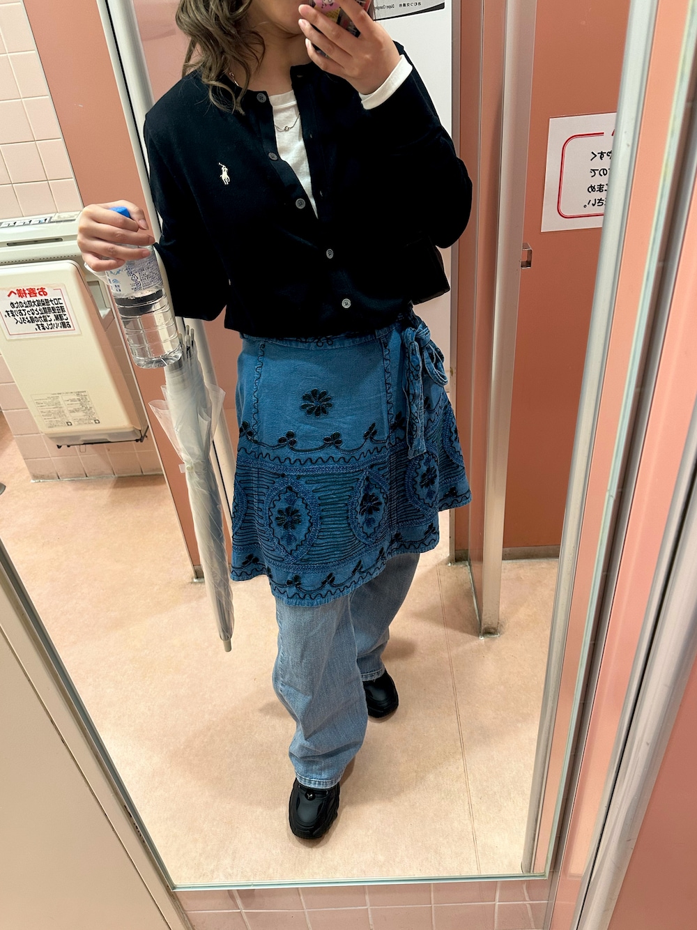 手持ち服で必死に流行りのレイヤード💦💦😞 カナダで買った巻きスカートはガチお気に入りだかんな💢 幼児期スカートズボンに憧れてたから念願やで