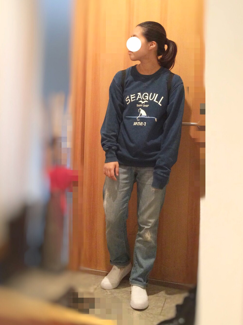 5分くらいで決めただるだるコーデ 体型には合ってないけどこういう格好もすきー デニムonデニム