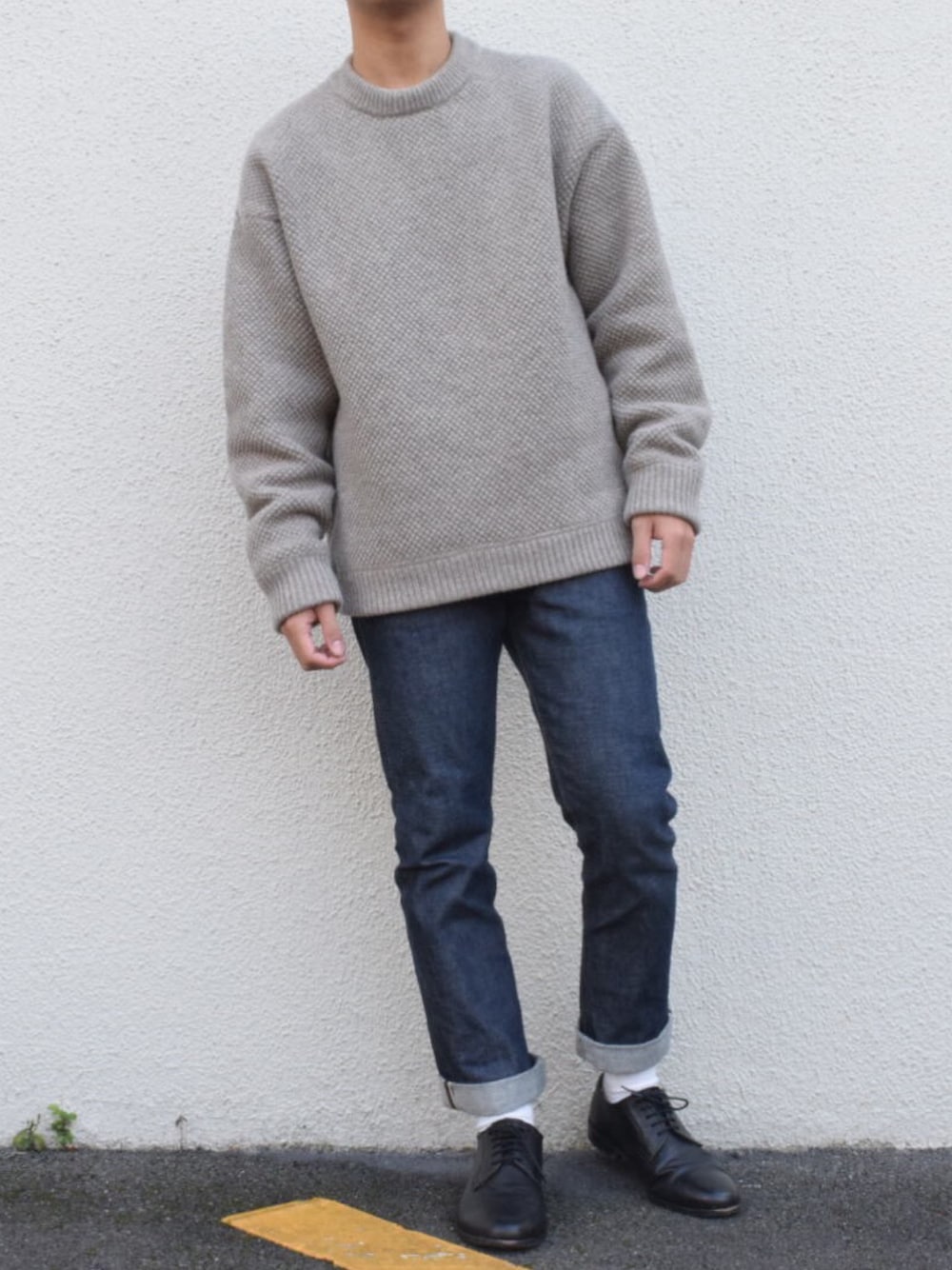 やなのニット/セーター「【crepuscule】〈別注〉ウール 鹿の子プルオーバーニット MEN」を使ったコーディネート