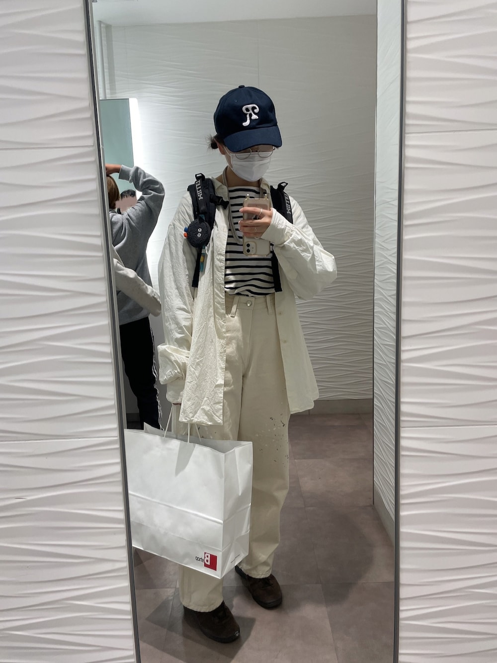 ホワイト×ネイビー shirt:Casey•Casey tops:orcival denim:Lee backpack:Millet shoes:adidas cap:Reception eye wear:JINS phone:topologie