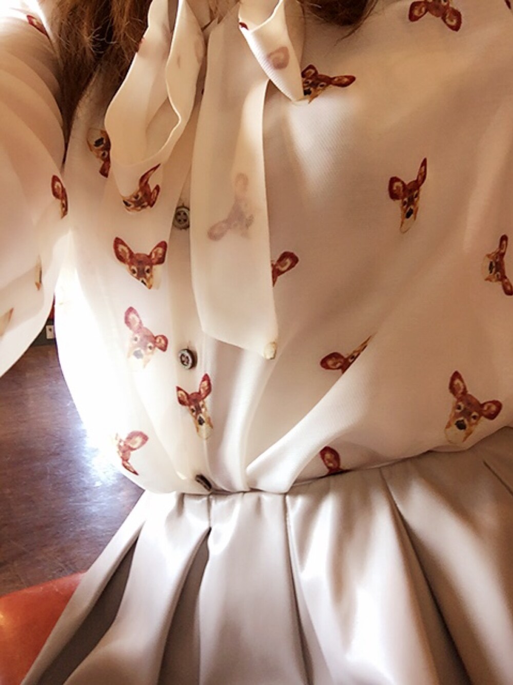 テレビでアナウンサーさんが着ていて可愛いなって思ったバンビ柄シャツ。。 去年、眺める用に買って今日、初めて着てみましたーー。バンビかわいい♡動物柄すきです。