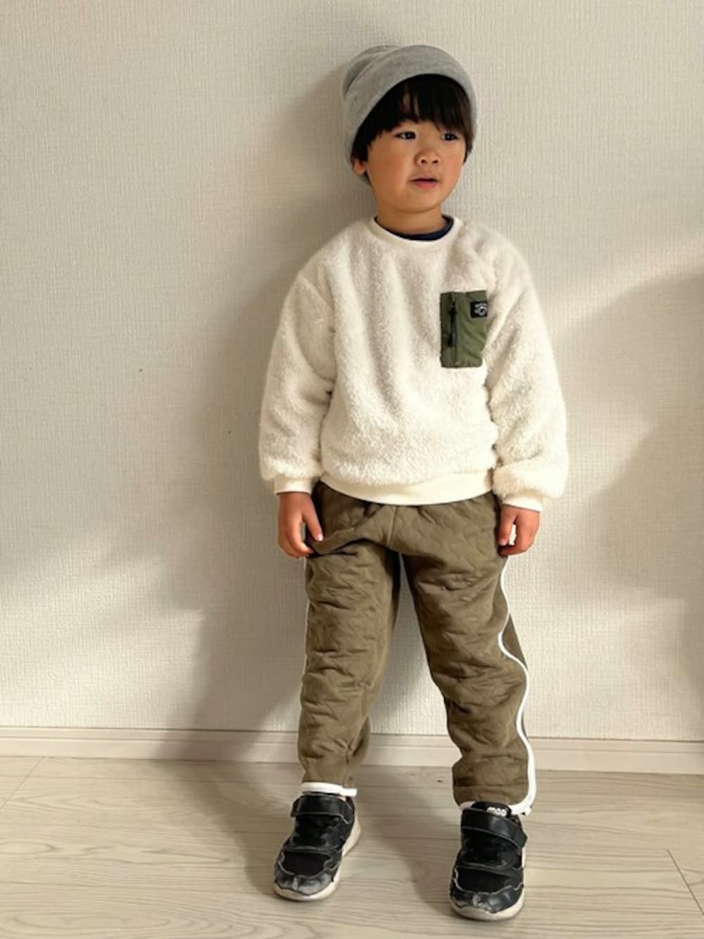 もこもこボアトレーナー×ふわふわニットキルトパンツのあったかコーデ♪
