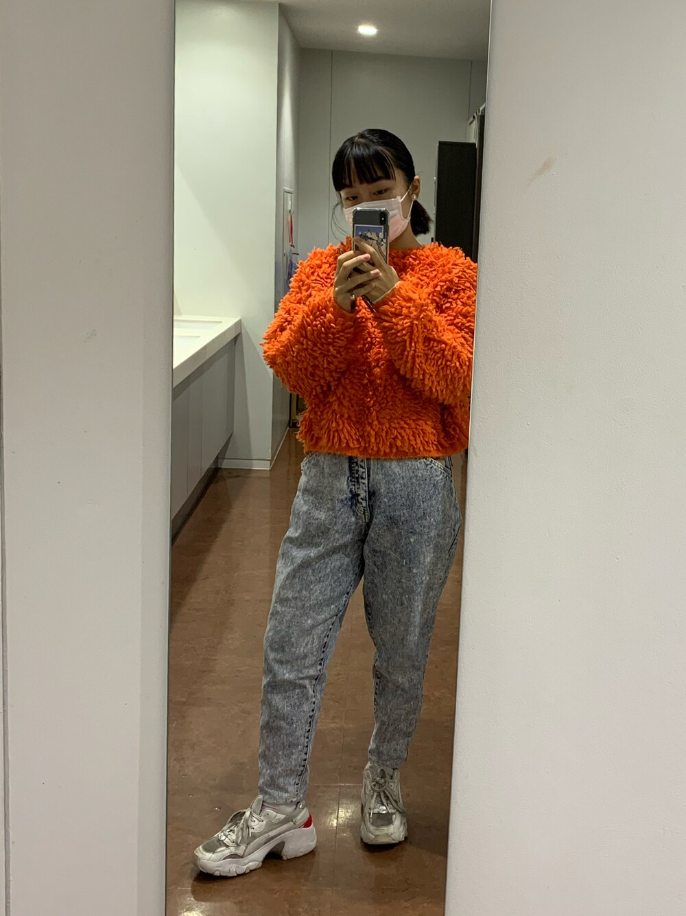 モップニットにケミカルジーンズ