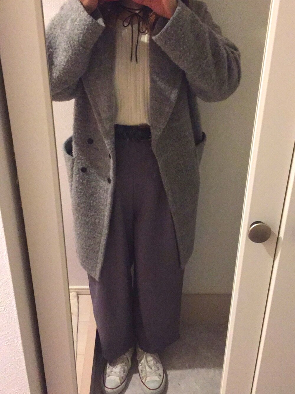 本日もマイブームの同系色コーディネート‼︎ 今回はグレーをメインとしてみました🌟 ちなみに帽子もグレーのファーキャップでした笑
