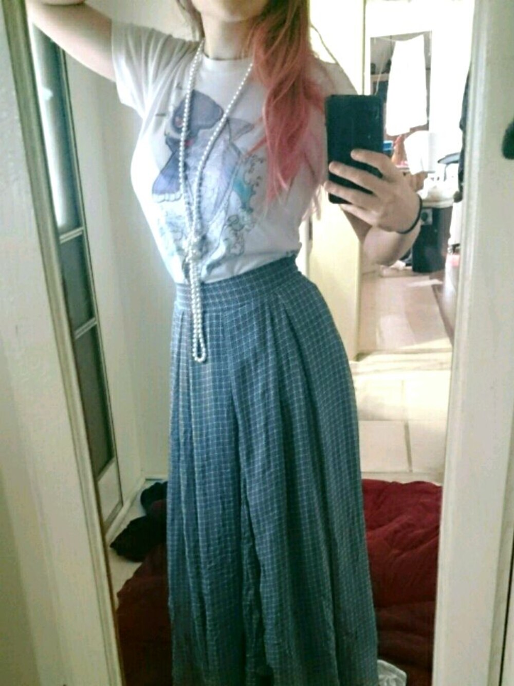 Sleepy Monday means messy hair and comfy clothes for work. I added my pearl necklace to make it a little dressier for work .