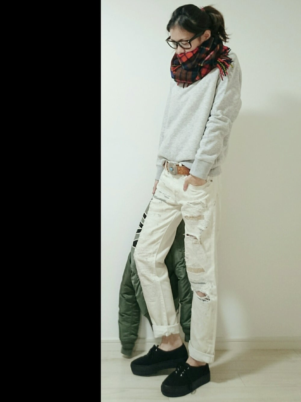 jamicoのマフラー「JOHN SCOTT(ジョン スコット): 大判 スクエア/マフラー(ストール)」を使ったコーディネート