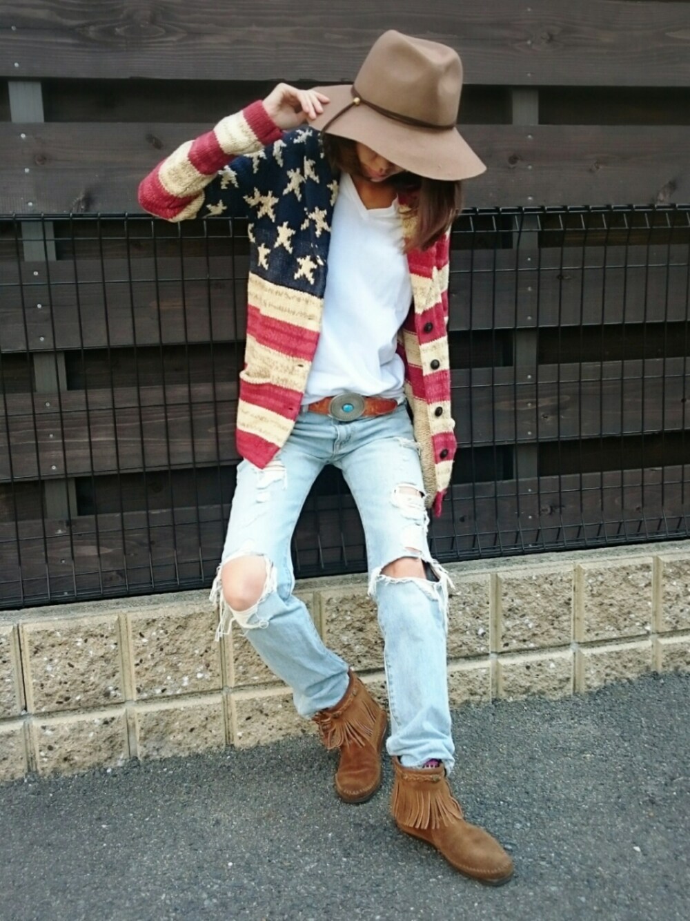 jamicoのハット「BAYFLOW/スウェードタイツバヒロハット」を使ったコーディネート