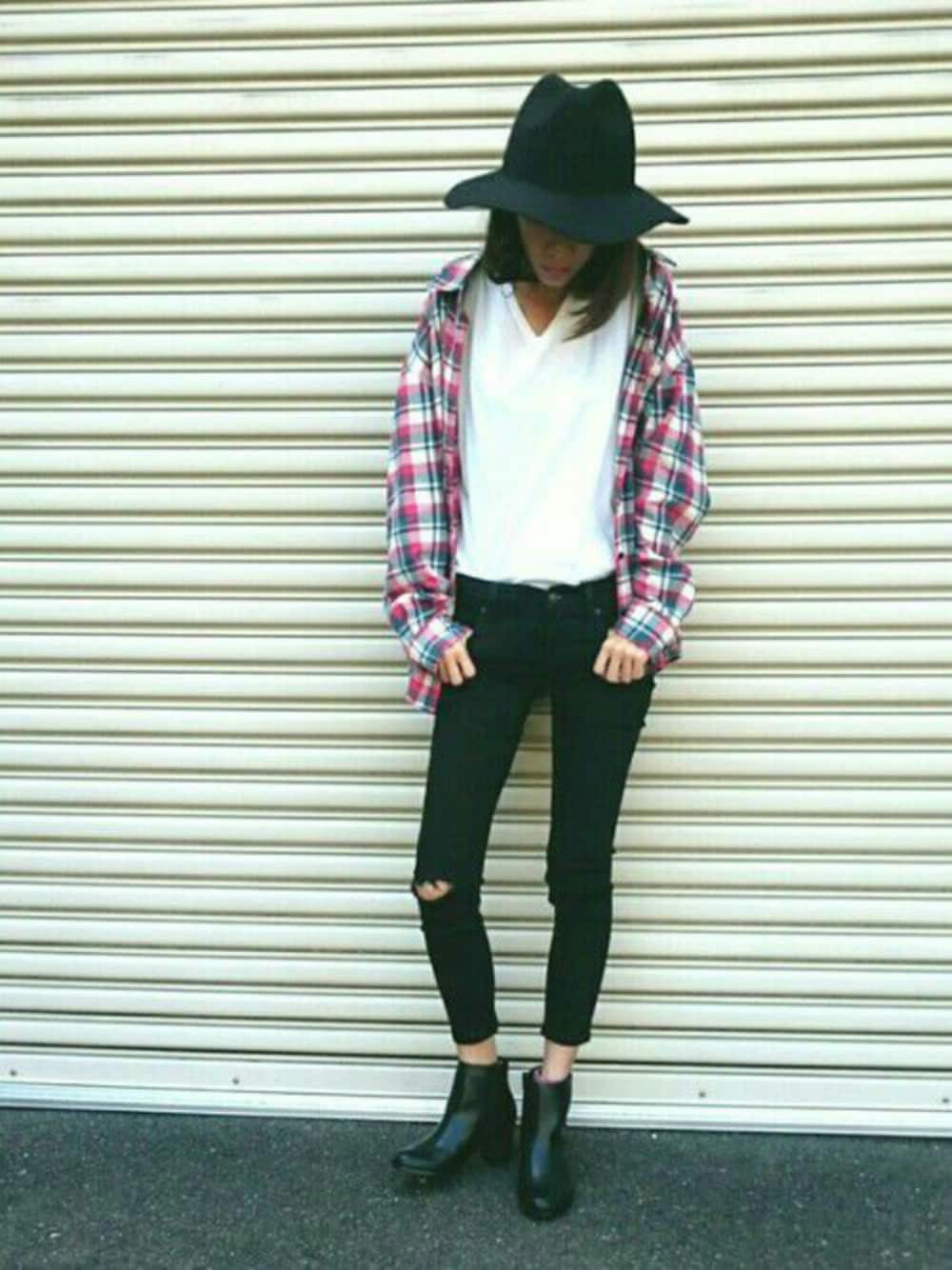 jamicoのシャツワンピース「スプリングチェックシャツ ワンピース」を使ったコーディネート