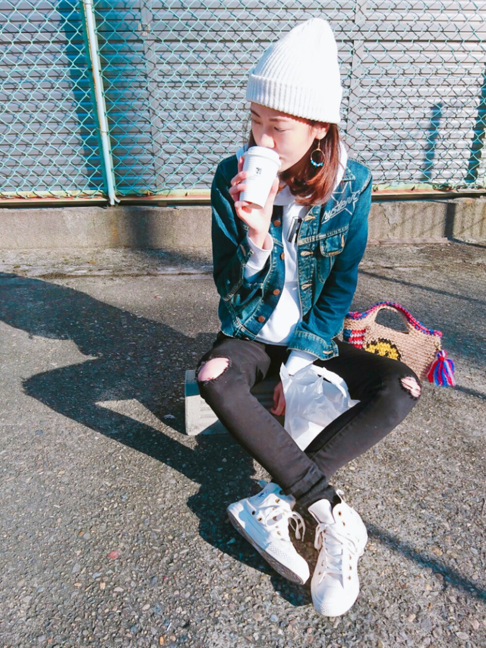 jamicoのニットキャップ/ビーニー「コットンラメ ワッチキャップ」を使ったコーディネート