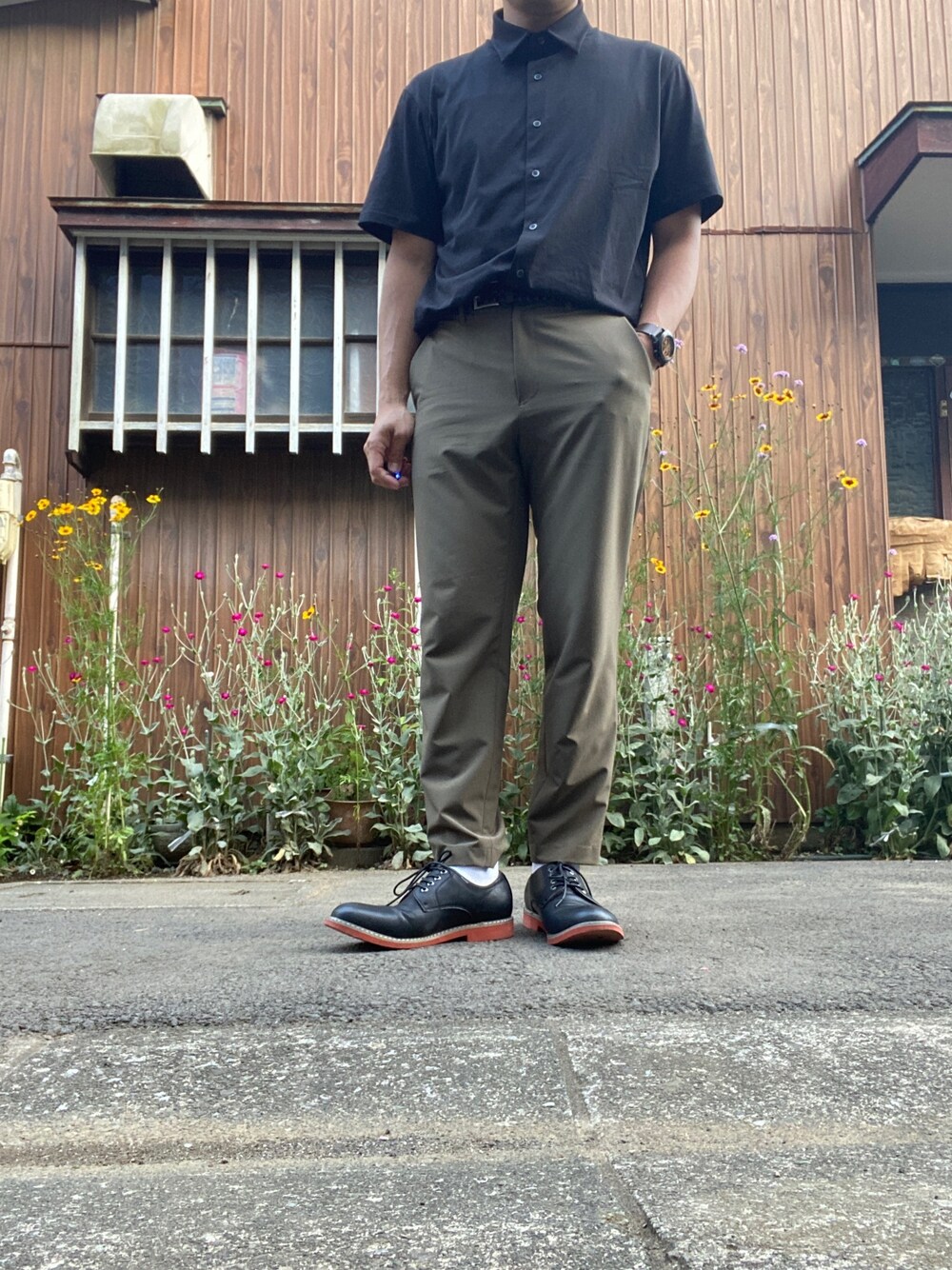 いつも沢山の閲覧、いいね、お気に入りありがとうございます。 今回は初めてのクールビズに挑戦しました。 生地感と色味が気に入って買ったエアリズムジャージーポロシャツにGUドライアンクルトラウザーのカーキを合わせてみました。 普段建設業で働いている身としてスーツはまず着る機会が少ない。 その中でもクールビズ、オフィスカジュアルは本当に縁が無く着る機会がございませんでした。 夏場の会議ということで台襟の付いたユニクロのポロシャツには何が合うか考えた所、黒ポロシャツにカーキパンツは良いんじゃないかと思いトライ。 インナーにはGUドライの肌着を着てるので服が肌にくっ付く事は無く快適に過ごせました。 足元は黒いシューズということで先日購入したO-NINEのレースアップシューズで整えました。 これが街着だと硬すぎだと思いましたが会議シチュエーションという事で行けるはずと思い突入。 会議ではカジュアル過ぎとか言われることは無く無事終了。 これで色違いで色々試せそうです。 イージーケアで日本の夏を乗り切ります!