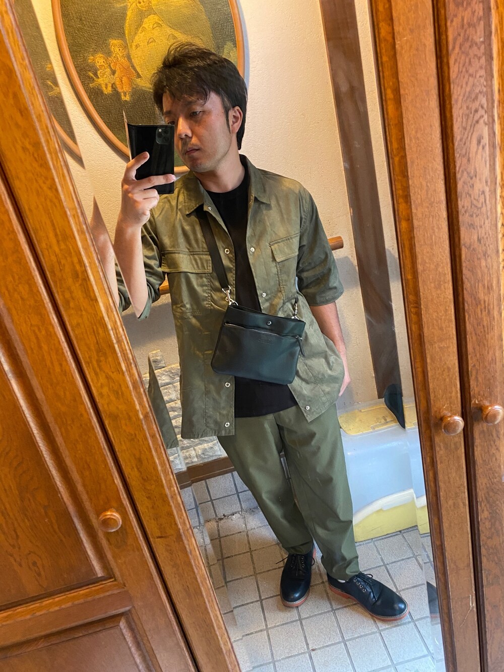いつも閲覧ありがとうございます。 本日は一年前に買ったGUのカーキのスラックスみたいなパンツからスタートです。 買ったは良いけど使い道がわからずいたこのパンツをどうにか着てみようとトライ。 カーキのパンツにはやはり黒のTシャツでしょうという事でエアリズムコットンクルーネックTシャツをチョイス。 Tシャツ単体で終わらせるのは地味すぎると思い、オーバーサイズではないスリムな方を選びました。 上にはタケオキクチで買った半袖のスウェード調のジャケットを合わせてセットアップに寄せるイメージで合わせました。 色味がかなりカジュアル寄りなので足元はO-NINEのレースアップシューズをチョイス。 もう少しドレス要素を入れたいので定番のレザー調のサコッシュをさして完成です。 感想 GUのこのカーキのパンツが本当に使い所がわからないままで眠っていたのですがやろうと思えばそれなりになってくれたのが感動しました。 タケオキクチのこのジャケットを先月水色とカーキの2色購入したのですが今回カーキがこのパンツと相性抜群だったので組めたって所もあります。 スウェード調なので光沢がありシルエット、デザイン的にカジュアルでもドレス要素も混ざっていて使い回しやすいアイテムです。 O-NINEのレースアップシューズは安定の使いやすさ。 グローバルワークスのサコッシュも差し込みやすく重宝してます。 参考になった方いらっしゃいましたらいいね、お気に入り、フォローしていただけるとモチベーション上がるのでよろしくお願いします。