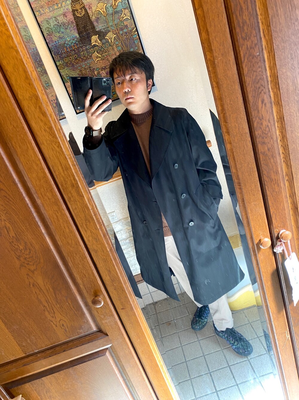 いつも閲覧ありがとうございます。 本日はユニクロUのミドルゲージモックネックセーターからスタートです。 色はブラウンでサイズはXL。 ニットのみだと朝晩寒いので薄手の羽織りものが欲しくなり黒のトレンチコートをチョイス。 モノトーン+一色を意識してボトムスはベージュのカーゴパンツをチョイス。 綺麗目感が少し多めなので靴はスニーカーで合わせて整えました。 感想 ユニクロUのトレンチコートは2019awタイプでまだ2回目のコーデですが簡単に様になるので便利。 トレンチコートを着るときはインナーはかなり崩しても崩れすぎにならないのでもっと遊んでも良かった。 プラステのカーゴパンツも使いやすくてブラウンのニットに相性がよくて良かった。 普段ニットが苦手で中々手が出ない中、ブラウンの色味に惹かれてトライしてみました。 着るだけで秋冬っぽくなり季節感を演出出来るのが良い。 ニットのサイズ感も気をつけてガタイが大きめの私は少しドレープが出るサイズ感を意識してXLにしましたがもう1サイズ上もありかと思いました。 保険のお姉様にも誉めていただけたコーデなので良かったら試してみては? 参考になった方いらっしゃいましたらイイね、お気に入り、フォローしていただけるとモチベーション上がるのでよろしくお願いします。