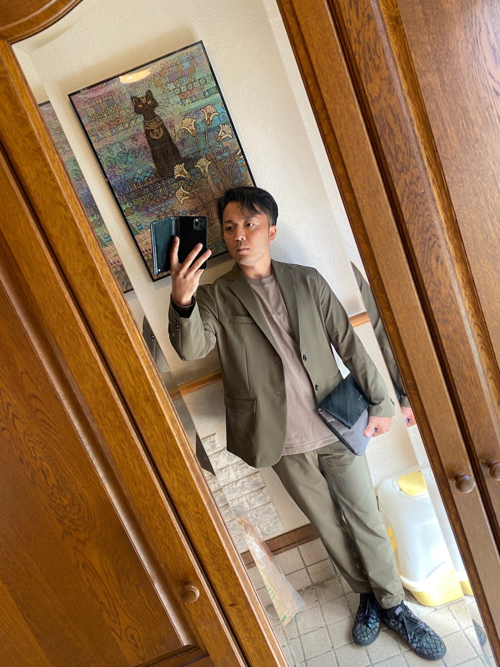 いつも閲覧ありがとうございます。 本日はGUのGUドライストレッチのセットアップからスタートです。 春夏用の素材なので寒いと思うかもしれませんが寒暖差のある18-20°前後のこの時期だとむしろ丁度よく快適に過ごせます。 インナーはエアリズムコットンUVカットTシャツの長袖のベージュをチョイス。 オリーブの色味にアースカラーコーデを意識してチョイスしました。 ブラウンだと重いけど少し明るいベージュが良い感じでマッチしてると思います。 綺麗目系、ドレス寄りになってるので靴はいつものスタンスミス。 クラッチバックを持たせて完成です。 エアリズムコットンのシャツにGUドライと夏仕様みたいですが肌寒かったら上にコートを羽織ってもいいしバリエーションあると思います。 肌寒い時期に重ね着をすると汗のコントロールが難しくないですか? 寒い時期に夏用の快適衣類をインナーやジャケットで着てその上にコートやダウンを着るのも湿度コントロール的にありなんじゃ無いかと勝手に思ってます。 昼の日差しの下は暑いし日が陰ったら寒いこんな時期にオススメなコーデです。 参考になった方いらっしゃいましたらいいね、お気に入り、フォローしていただけるとモチベーション上がるのでよろしくお願いします。