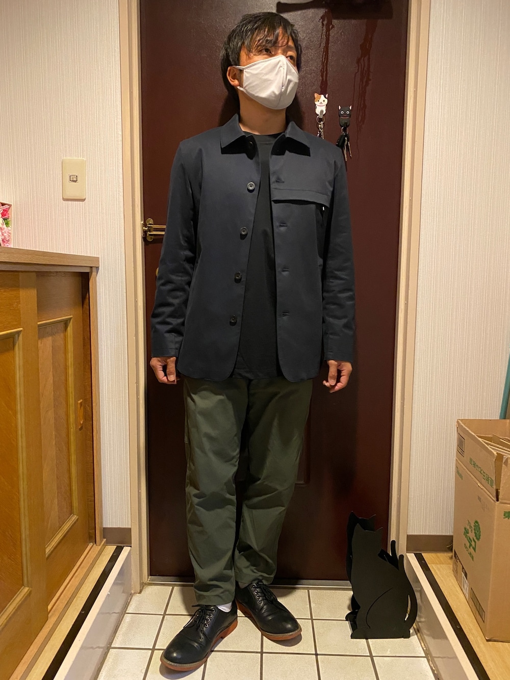 いつも閲覧ありがとうございます。 本日はナイロンギアパンツのオリーブからスタート。 サイズはM 裾は股下66でつめてオンラインで購入。 オリーブのボトムスには黒のシャツが合うのでエアリズムUVカットクルーネックTの4XL。 肌寒いので昨年買ったPLSTのカバーオールジャケットを羽織りました。 XLのネイビーです。 だいぶカジュアルに寄ったので白靴下に革靴を合わせて完成です。 感想 アウターを脱いでる状態でもわりかしさまになるコーデ。 カバーオールはジャケットを羽織りたいけどドレスに寄りすぎない感じが好きです。 綺麗目で襟もしっかりしてるのでインナーのシャツはワイシャツで合わせても良い感じになりそう。 参考になった方いらっしゃいましたらイイね、お気に入り、フォローしていただけるとモチベーション上がるのでよろしくお願いします。
