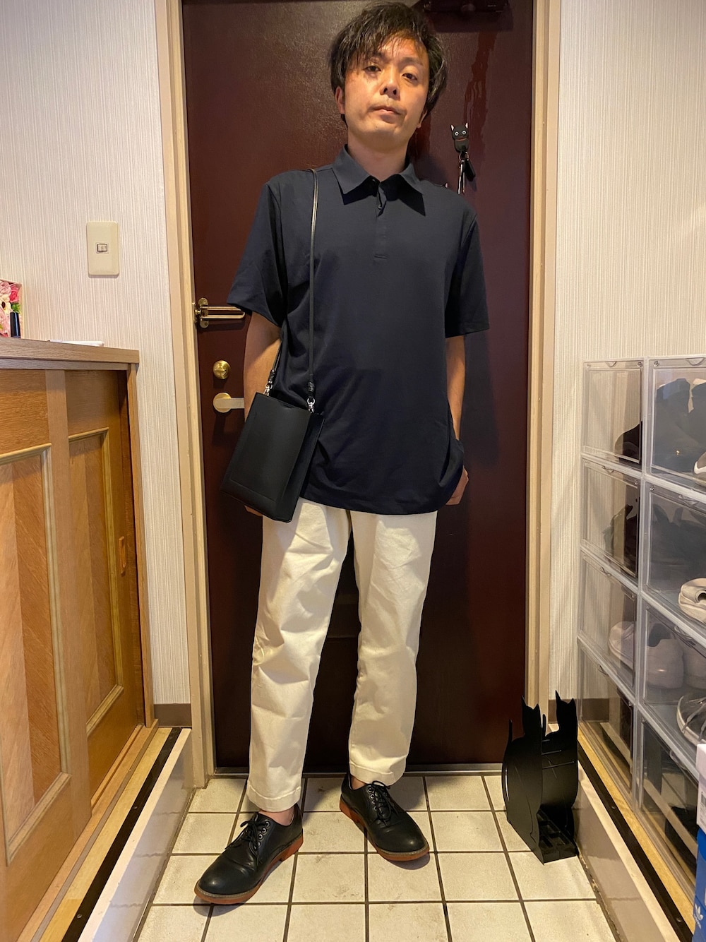 UNIQLO×theoryコラボ エアリズムスリムフィットポロシャツ ネイビー XXL theoryコラボのポロシャツが好きで去年から毎年買ってます。 theoryコラボのアイテムはスリムフィットが多くサイズをいつもの感覚で選んでしまうとピチピチになってしまうので注意が必要。普段UNIQLOで選んでるサイズより1サイズ上げで買うのがよろしいかと。 ポロシャツ系アイテムの中でこのアイテムが一番綺麗目に見えるので休日のおじさん臭さが払拭出来て好きです。 ネイビーの色味が黒に近い為ボトムスには明るい色を合わせました。 このパンツは綺麗めでストレッチが効いて良いのですが細かい毛などが着きやすい生地感になってますのでコロコロ必須です。 値段は安いので綺麗めパンツを安く探しているのなら有りかと。 いつも閲覧ありがとうございます。 参考になった方いらっしゃいましたらイイね、お気に入り、フォローしていただけるとモチベーション上がるのでよろしくお願いします。