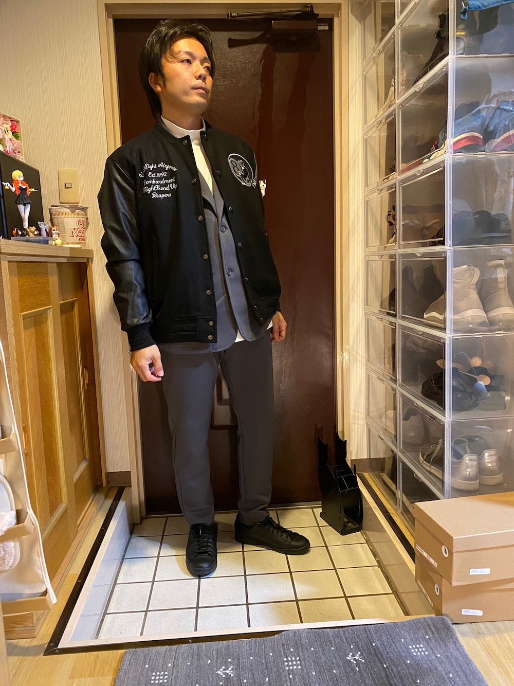 karakubuyのスタジャン。 Twitterで写真あげてたけどwearで上げてなかったのに気付いたので今更ですがUPします。 カジュアルめなアウターとして購入しました。 カジュアルすぎると使いづらいのですが黒と黒の別素材の切り替えによりモノトーンで地味になりすぎない良いカジュアル感が気に入ってます。 イラストも色を使いすぎておらずカジュアルダウンするにも使いやすいお気に入りアウターです。 いつも閲覧ありがとうございます。 参考になった方いらっしゃいましたらイイね、お気に入り、フォローしていただけるとモチベーション上がるのでよろしくお願いします。