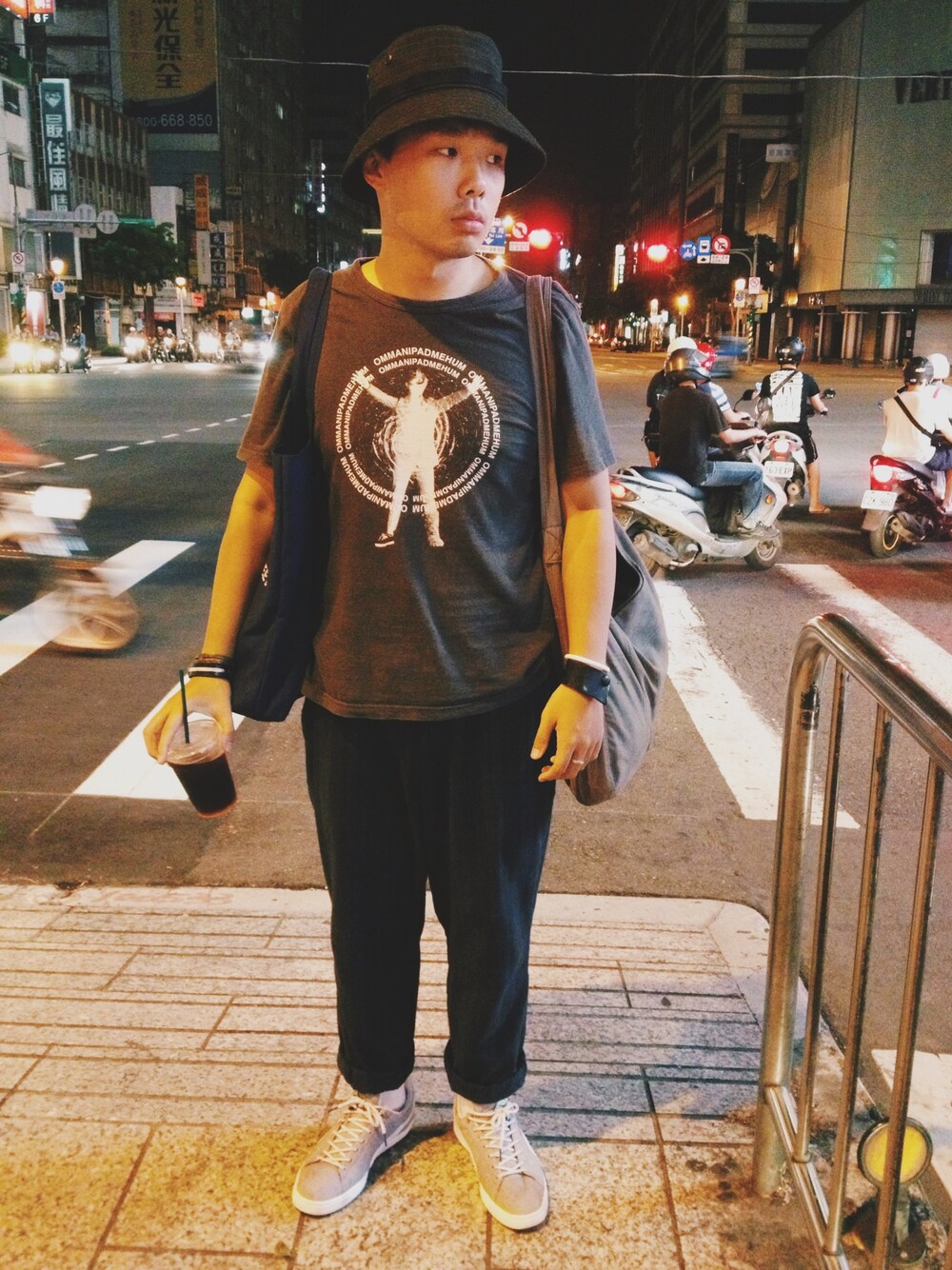 短袖圖像tee 格紋家居褲 機能性漁夫帽 灰色球鞋