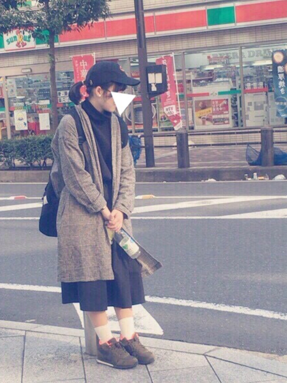 黒で大人めの印象を持たせ キャップを取り入れ遊び心を出しました🎩