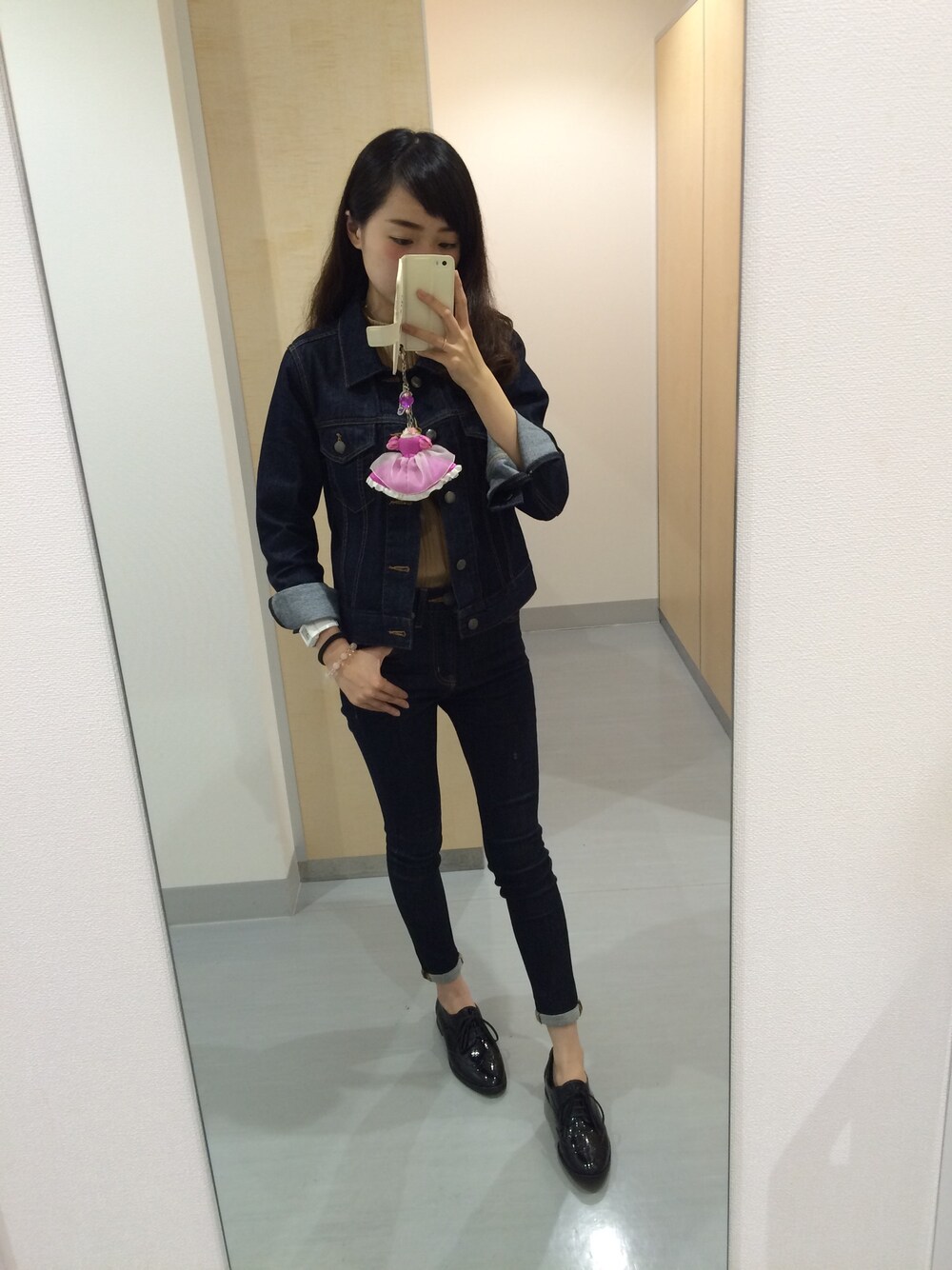 デニムonデニムコーデ♩ 中は五分袖のニット♩このニット使い勝手いい〜💓