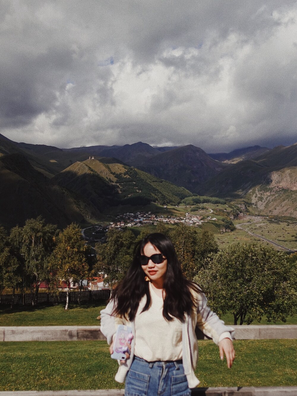 In front of the snowy mountain Which is hidden by the clouds😎