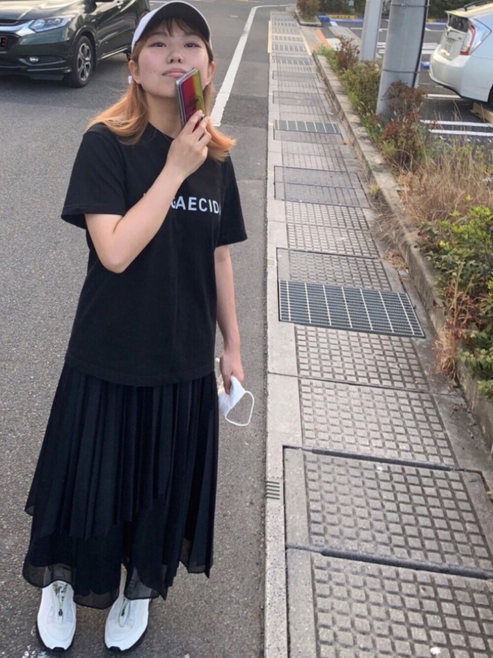 The 黒 インスタもよろしくねー 👚Jiji-T 👖publictokyo 🥾Reebok 🧢Nike トップスはインしない!のが今年、らしい 知らんけど🤣 BAIGAECIDAティーいい仕事するよね