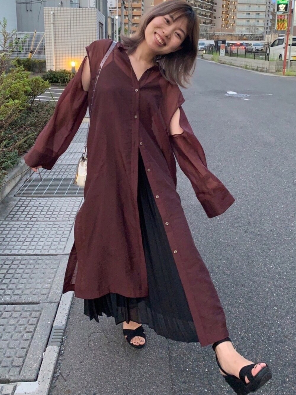 peepのシャツワンピース「アームスリットシースルーシャツワンピ」を使ったコーディネート
