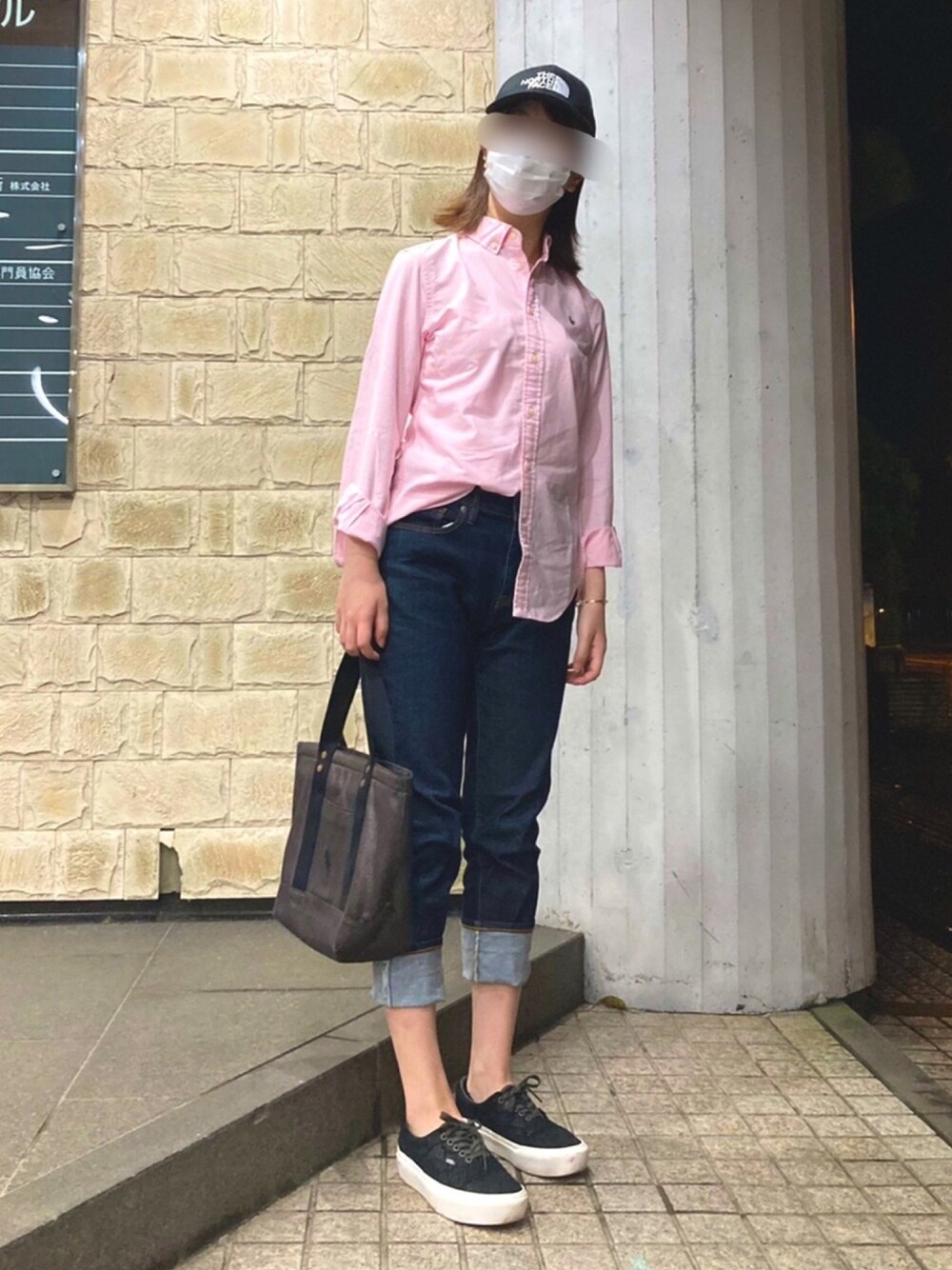 最近涼しいですね!シャツスタイル👚 VANSのスニーカーはデザインが綺麗めなので幅広く使えます🥰 帽子、バッグ、靴を暗色で揃えました^_^