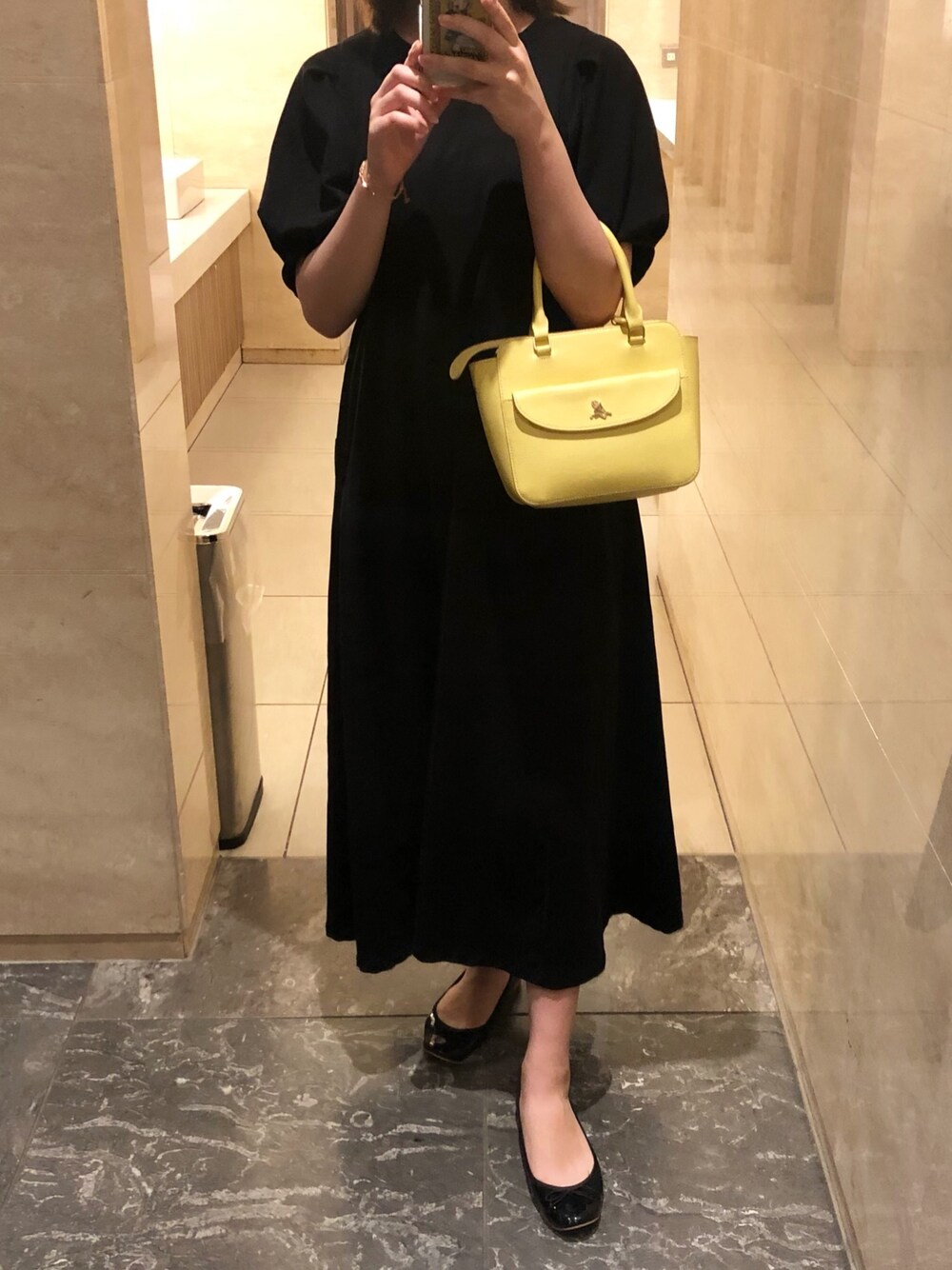 差し色にイエロー⭐️ 袖がふんわりしているので二の腕カバーしてくれます!ワンピースはとても柔らかく着心地が良いです😌