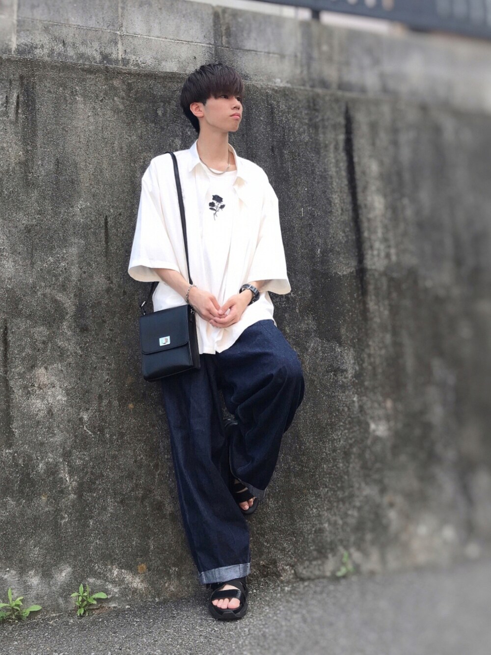 【私服コーデ】 いつも見てくださりありがとうございます!😊 今回は、夏っぽい清涼感溢れるワイドシルエットコーデとなってます!! 白の面積を増やす一方で黒の面積を減らすことで、夏らしい爽やかさを存分に出すことができます!!😆😆 また、モノトーン+1色をブルーにすることで、より一層爽やかに見せることができ同時にデニムというトレンド要素も楽しめます!!😁 ☆ポイント 夏の定番3色の爽やかスタイル!!シャツ×デニムの究極の組み合わせこそ、シルエットや足元で差別化を!!😉 トレンドのデニムはこの夏秋から楽しめることができ、色味をネイビーなどの暗めを採用することで秋でも楽しむことが可能!!👍👍 更に、薔薇の刺繍・レザーサンダル・バッグで黒の上品さを加えることができ、全体に統一感が生ませます!!🤟 今年も残り少なくなりつつある夏ですが、秋の準備をしつつ、今までとは違った着こなしで残りの夏も楽しんでください!!🤞 _________________ ※フォロワーが500人に達したときに重大な報告があります!!😳 私自身のインスタのアカウントでも、その時は告知します! 良ければ、私のWEARアカウントの拡散を宜しくお願いします!!🙇♂️