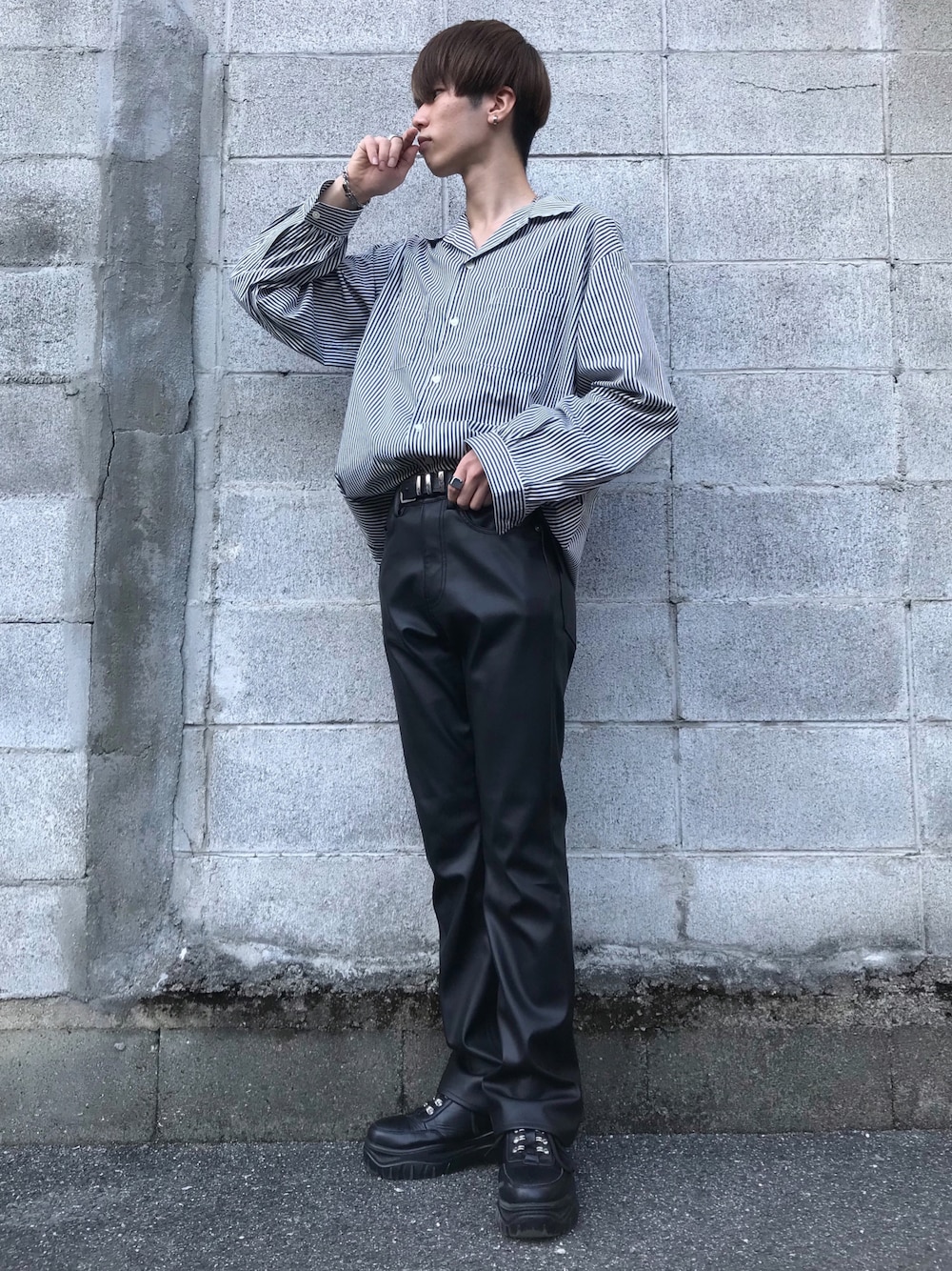 【私服コーデ】 いつも見てくださりありがとうございます😊 今回は、今季のトレンド今後のトレンドを意識した綺麗め秋コーデになってます!! 去年からかなり注目されているレザー素材を使ったフレアパンツを使用しました!!😆😆 最近は、細身のパンツより太めのパンツがメンズファッションで主流になりつつあります🧐 そんな中メンズでは多くは見られないフレアパンツを使用することで超簡単に差別化が可能に!!😁😁 ☆ポイント 秋のスタイリッシュ且つトレンディーコーデ!!秋らしいレザー素材にタックインで綺麗め全開!!今期の秋こそクールビューティーにパフォーマンス!!😉 少しラフ感が欲しい方は、トップスに胸元が広いオープンカラーシャツを使用するとセクシーさを出すことができます!!👍👍 腕周りをラフにする事で、綺麗め色なシャツでも、オフィスシャツの様なカッチリ感が拭えます🤟🤟 秋こそ、綺麗めに振り切って冬アウターを合わせてみませんか?? ぜっっっっっったい、めちゃ楽しくなります🤞 _____________________ 今期の秋冬(AW)は夏コーデ同様熱々なスタイルを投稿する予定ですので乞うご期待!!🥰 秋冬こそ細かいところまで拘れる!! そんなポイントやトレンド要素の紹介! _________________ ※フォロワーが500人に達したときに重大な報告があります!!😳 私自身のインスタのアカウントでも、その時は告知します! 良ければ、私のWEARアカウントの拡散を宜しくお願いします!!🙇♂️