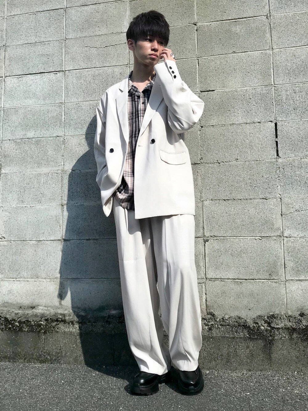 明けましておめでとうございます🎍 【私服コーデ】 いつも見てくださりありがとうございます😊 今回は、ワントーンを意識した綺麗めスタイルになってます!! ビッグトレンドの一つである、セットアップスタイルで容易に差別化を図れます!!😁😁 ホワイトのセットアップということで、普段は違うセットアップを楽しめます!!😆😆 ☆ポイント 秋冬のワントーンセットアップスタイル!!クールビューティーを意識した色味で、the・カッコいいの雰囲気でエレガントムードに切り替え!!😉 ホワイトのセットアップでキザ過ぎるという方もトップスをベージュチェックのシャツにすることで、可愛い印象も確立!!👍👍 きっちりし過ぎないように、オーバーに着ることが何よりも大事!!🤟🤟 ホワイトの中にワンポイントでブラックを取り入れることで、メリハリを出すことができます!!😳😳 綺麗めコーデでもカジュアルコーデでも使えるスニーカーがadrerリリースのハイソールリングダッドスニーカーです!!🌹 秋冬でコーデが迷ったらセットアップをインナー使いにコートを着ると更に綺麗めコーデに寄せることができます!!🤞 __________________________ 今期の秋冬(AW)は夏コーデ同様熱々なスタイルを投稿する予定ですので乞うご期待!!🥰 秋冬こそ細かいところまで拘れる!! そんなポイントやトレンド要素の紹介! _________________ ※フォロワーが500人に達したときに重大な報告があります!!😳 私自身のインスタのアカウントでも、その時は告知します! 良ければ、私のWEARアカウントの拡散を宜しくお願いします!!🙇♂️