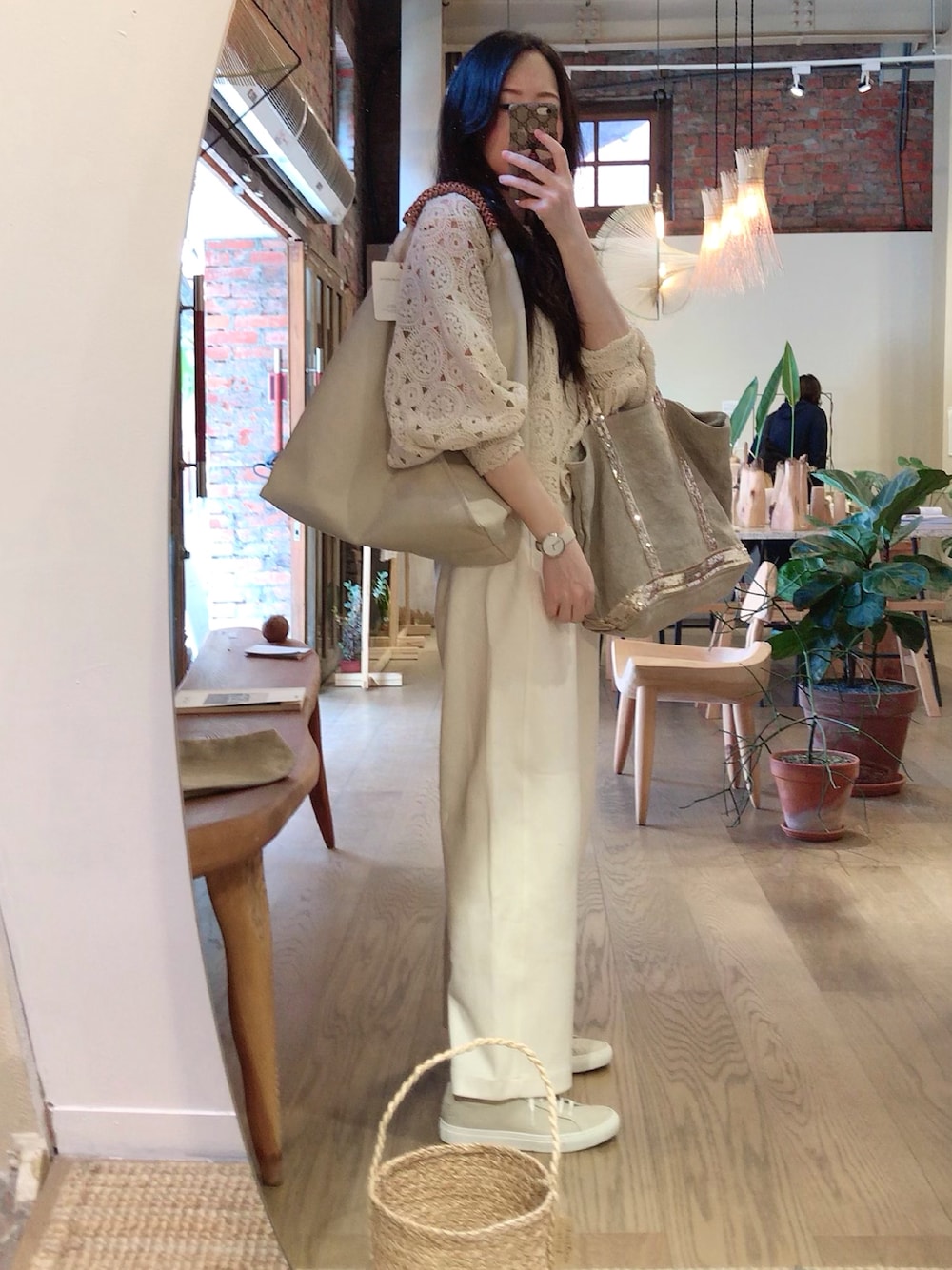 Beige x White x canvas bag = summer🌞